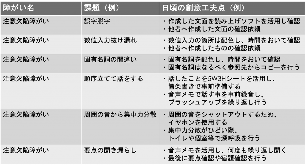 注意欠陥症(ADD)で工夫していること(例)